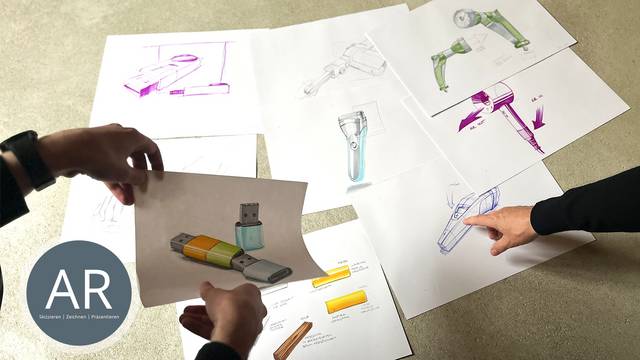 - Prozess belegen: Doppelseiten mit Skizzen, verworfenen Ansätzen, Notizen (Warum Variante B?).