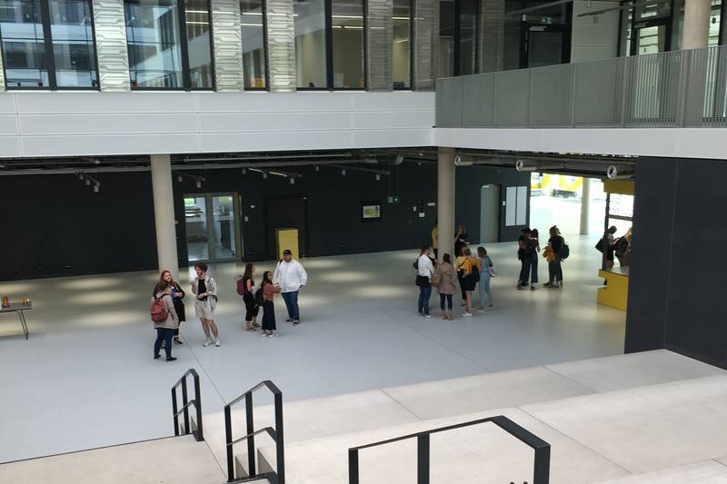 Eine Woche vor Vorlesungsbeginn war die Ersti-Woche. Nach bestandenem Eignungstest und erfolgreicher Mappenprüfung wurden die neuen Studenten von den Fachschaften begrüßt und in den Hochschulalltag eingeführt. Nach einer langen Phase der Bewerbung für ein Design-Studium und zugehöriger Erstellung einer Bewerbungsmappe Design, kann das Studium beginnen. Nervöse und gleichzeitig freudige Gesichter trifft man auf dem Flur. Einige fertigen schnelle Skizzen an um den gewaltigen Eindruck des neuen Gebäudes festzuhalten.